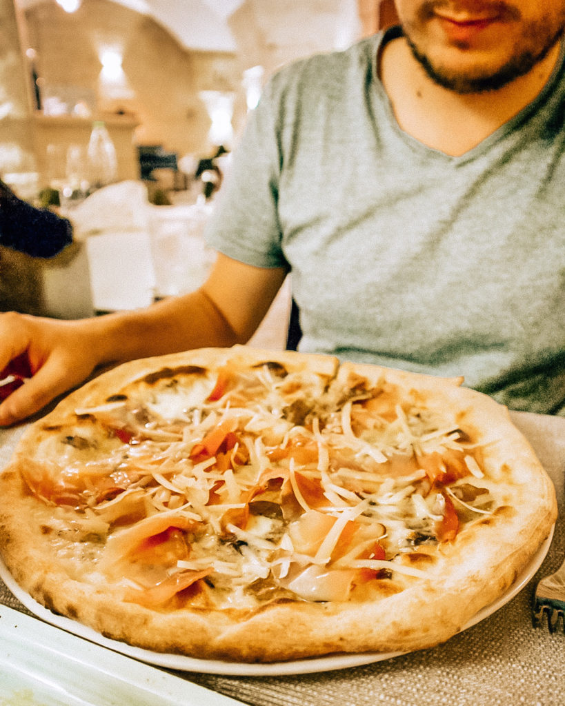 Une bonne pizza comme on les aime en France, soit avec une boule de mozza ou burrata en plein milieu ahah (et ce n’est pas si facile à trouver que ça en Italie !). Il y a 2 restos QuantoBasta dans les Pouilles, tous très mignons avec la pizza comme spécialité ! C’est bon !